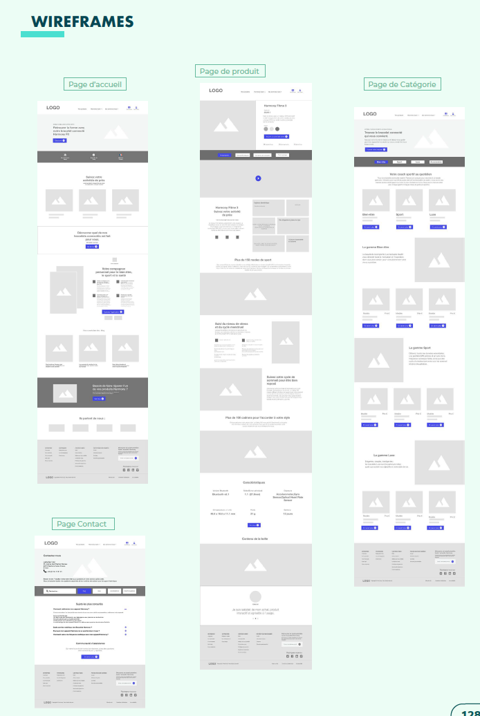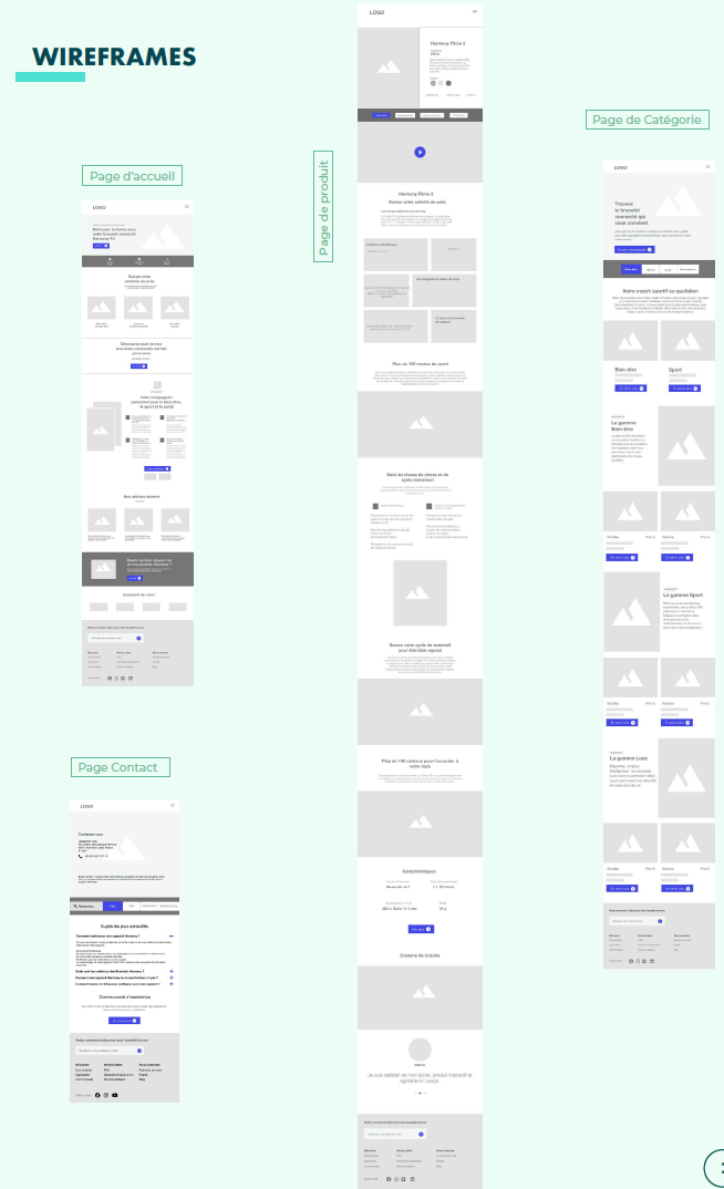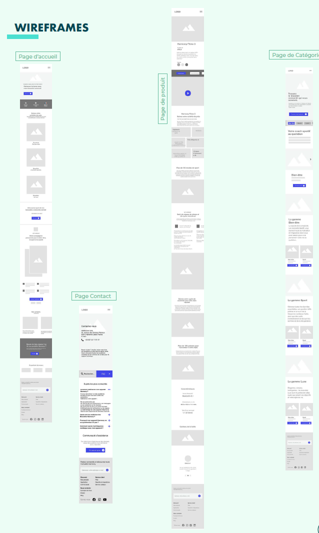 Using Figma, I created a full set of low-fidelity wireframes across 6 core pages: Home, Product page, Category page, Legal, Support, and Contact.